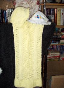the sweater, afghans and hats were all created using the same punch card pattern with different techniques